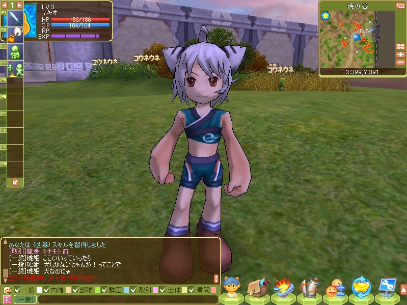 これがユキラです。鳥を選びました。ゆくゆくは治療師か仙法師になる予定。